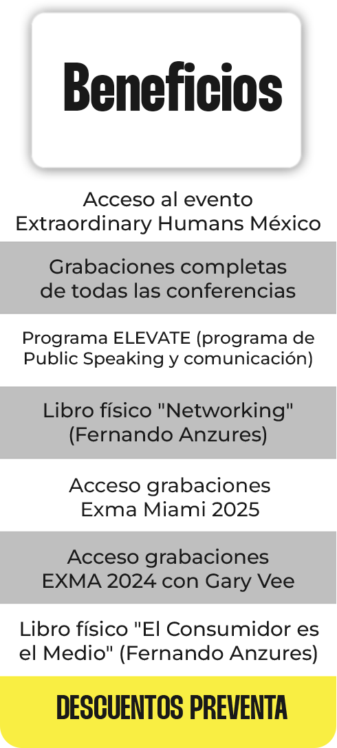 EXMA es la nueva educación en marketing, AI y negocios. En lugar de conferencias inspiracionales, aquí se analizan casos reales de personas, equipos y marcas para entender cómo logran resultados hoy. Cada ponencia se traduce en pasos claros: desde el uso de herramientas de AI para ventas, hasta procesos de planeación o estrategias de marketing que puedes replicar en tu empresa.